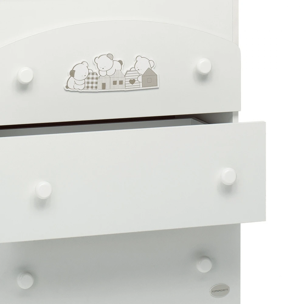 Caratterizzato da forme armoniose e teneri decori di animaletti sul cassetto superiore.