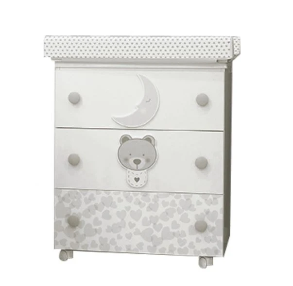 La Cassettiera Fasciatoio della nuova linea Moon di Pali è perfetta per conservare tutto quello che occorre al tuo bambino. Dotata di 3 ampi cassettoni, con dolci decorazioni, fasciatoio coordinato in PVC e la vaschetta per i primi bagnetti.