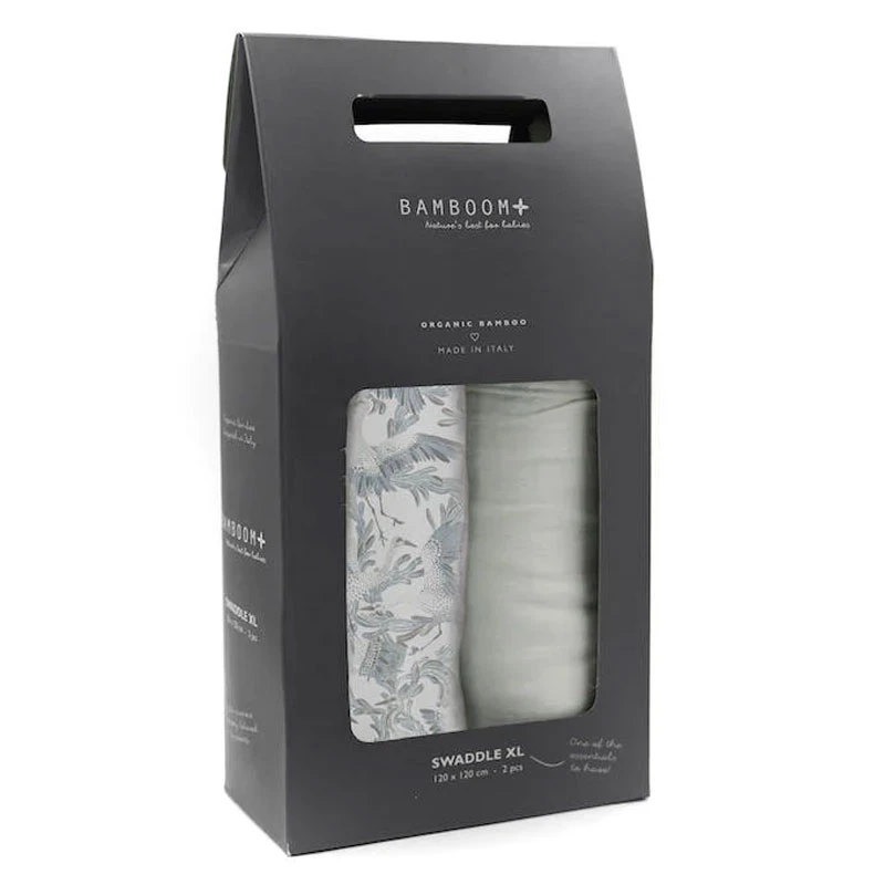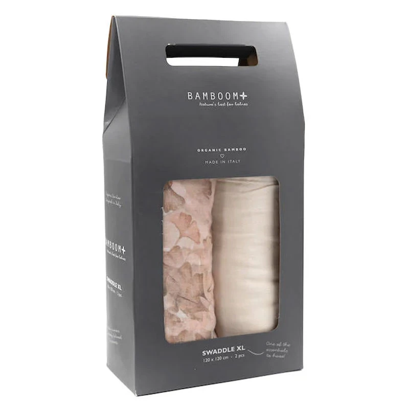 Bamboom 2Pack Swaddle XL in bambù organico, 120x120cm è una morbida coperta swaddle multiuso ideale per culla, lettino e carrozzina. Può essere utilizzata anche come asciugamano, coperta, coprifasciatoio e molto altro. Lo Swaddle XL 120x120cm è realizzato in bambù organico, altamente traspirante e dalle proprietà anallergiche, termoregolatrici e assorbe l’umidità. Ogni confezione contiene 3 swaddle in tre varianti colore diverse.