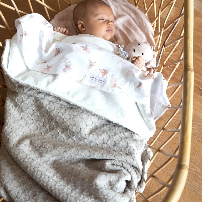 Bamboom Coperta Honey Neonato 140x100cm di Bamboom è compatibile con la maggior parte dei lettini di dimensioni standard, ma è perfetta anche da inserire nella culla o carrozzina. É realizzata in bambù organico e cotone, la sua soffice consistenza coccola il tuo bimbo e lo avvolge in un dolce e caldo abbraccio, morbido come una nuvola! Infine, i preziosi ricami doneranno un tocco di stile in più al lettino del neonato!