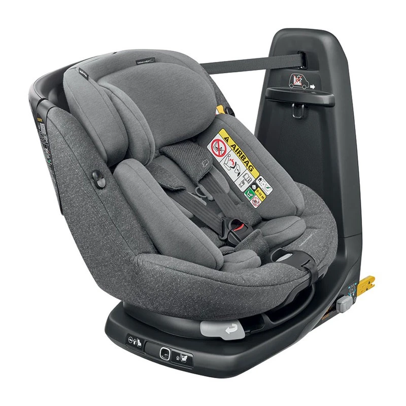 Bebeconfort Seggiolino Auto AxissFix i-Size è fornito di seduta girevole a 360°C e assicura un elevato livello di sicurezza grazie all’installazione con connettori Isofix in acciaio e l’efficiente Top Tether con sistema ASB, ossia un tensionamento automatico che assicura una stabile connessione tra lo schienale e la base. AxissFix può essere orientato in entrambi i sensi di marcia: in senso contrario alla marcia fino a 2 anni circa (87 cm), e in senso di marcia a partire dai 15 mesi e per tutto il periodo di utilizzo del seggiolino. É provvisto di protezioni laterali incorporate di schiuma impact absorbing (che assorbe l’energia in caso d’urto proteggendo la testa del bambino), scocca in polipropilene, sistema di ritenuta a 5 punti, schienale e poggiatesta reclinabile/regolabile in più posizioni e in entrambi le direzioni di marcia.