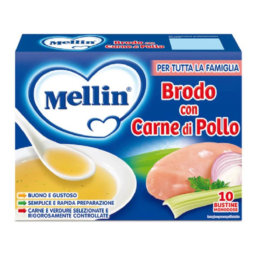 Mellin Brodo di Pollo e Verdure 10 x 5g. Il Brodo con Carne di Pollo Mellin è un’ottima base per diverse preparazioni. Buono e gustoso per tutta la famiglia, è adatto anche alla preparazione dei piatti del tuo bambino. Il Brodo con Carne di Pollo Mellin è prodotto con carne di pollo e verdure che Mellin sottopone ad accurati controlli, è pratico perchè già dosato in misura ottimale nella bustina, è semplice e di rapida preparazione.