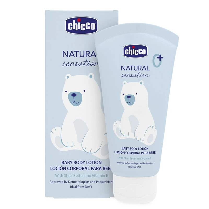 Chicco Baby Crema Corpo Natural Sansation con Burro di Karité, 150ml idrata e lenisce in profondità la pelle delicata del bambino. Contiene Burro di Karitè, Olio di Riso, Olio di Mandorle, Allantoina dalla note proprietà emollienti e protettive, è perfetta per effettuare dolci massaggi al tuo piccolo. Utilizzabile fin dalla nascita.