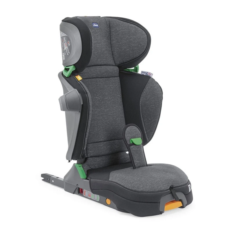Chicco Seggiolino Auto Fold&Go i-Size rientra tra i seggiolini i-Size e rispetta la normativa europea ECE R129, indicato per bambini dai 100 ai 150 cm (dai 3/4 ai 12 anni circa). É progettato per adattarsi alla crescita del bambino con il poggiatesta e lo schienale regolabile in larghezza e lunghezza, in questo modo potrai personalizzare ancora di più il seggiolino in base alla fisicità del tuo piccolo. L’installazione può avvenire tramite cinture di sicurezza a 3 punti dell’auto e Isofix o, in alternativa, con le sole cinture di sicurezza del veicolo. Inoltre, è fornito di guide colorate per cintura che ti aiutano ad aderire perfettamente al corpo del bambino, garantendo un viaggio più sicuro.