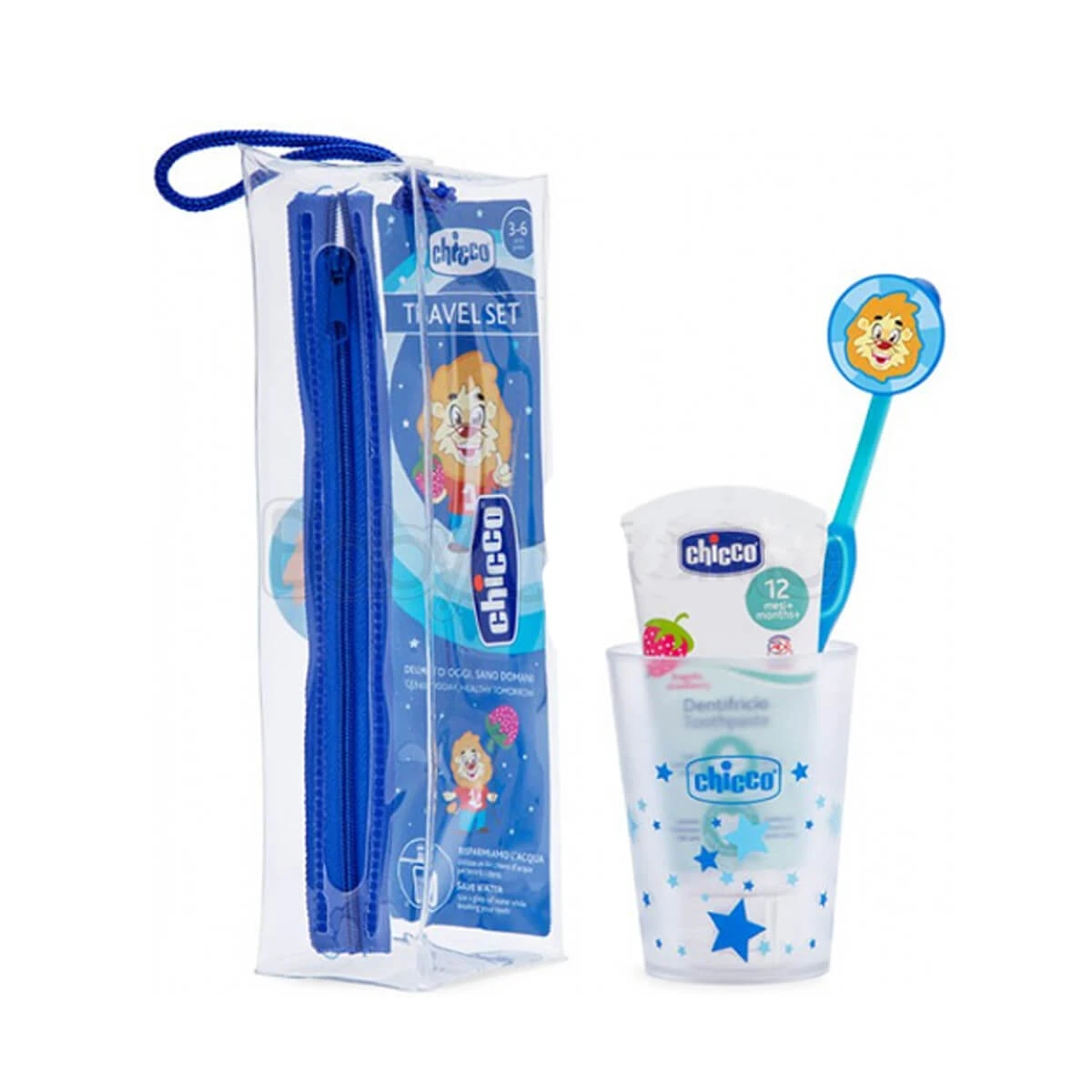 Pratico Set della Chicco con tutto il necessario per una corretta Igiene Orale. Questo Set è contenuto in una pratica pochette appendibile, perfetta on the go. La pochette contiene un bicchiere colorato, da usare mentre lavi i denti per risparmiare acqua, uno spazzolino con morbidissime setole “tapered technology”, con estremità microfini che conferiscono un’azione delicata sullo smalto e le gengive sensibili e un dentrifricio Chicco alla fragola, che rimuove la placca dentale senza intaccare lo smalto. Ideale per bambini dai 3 anni in su.