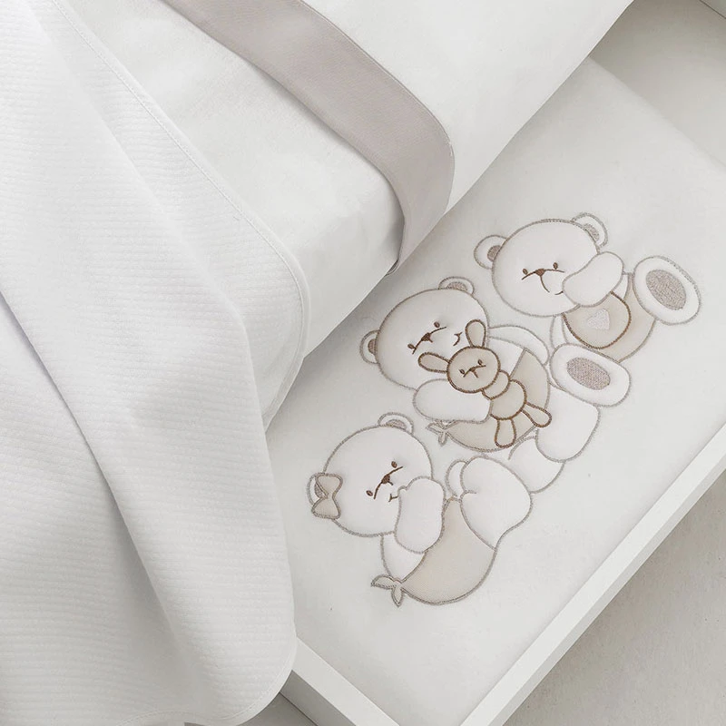Erbesi Coperta Pile Mirtillo – Bianco e Tortora di Erbesi è una morbida e calda coperta in pile ricamata con tre graziosi orsetti e un coniglietto. Perfetta da abbinare al .