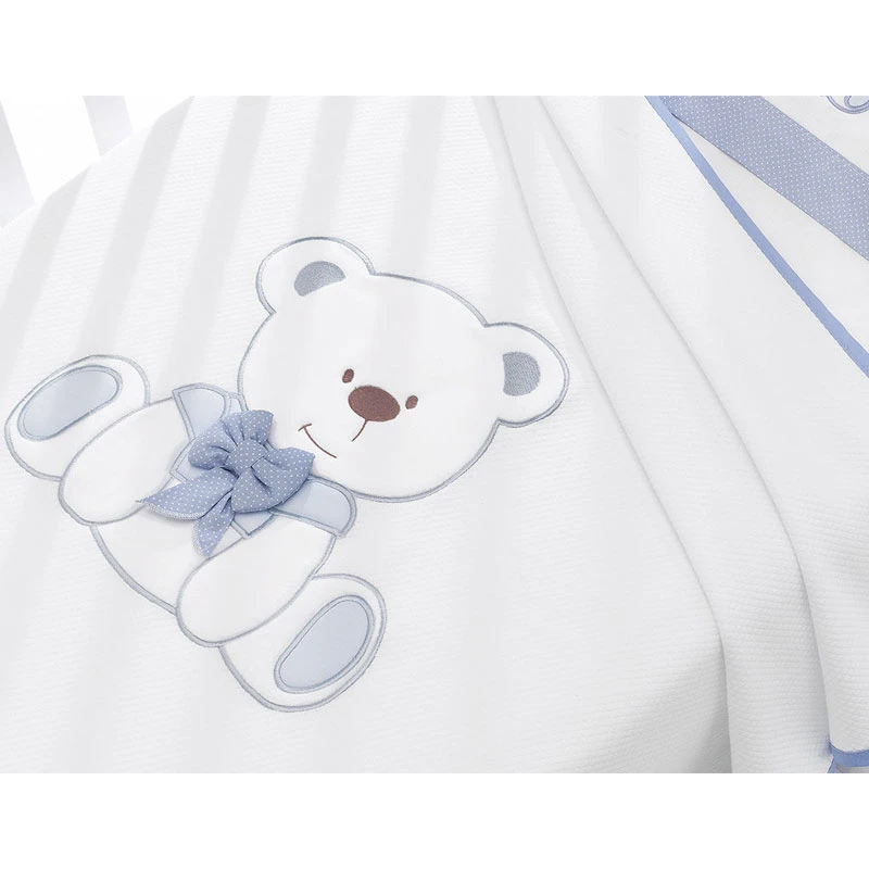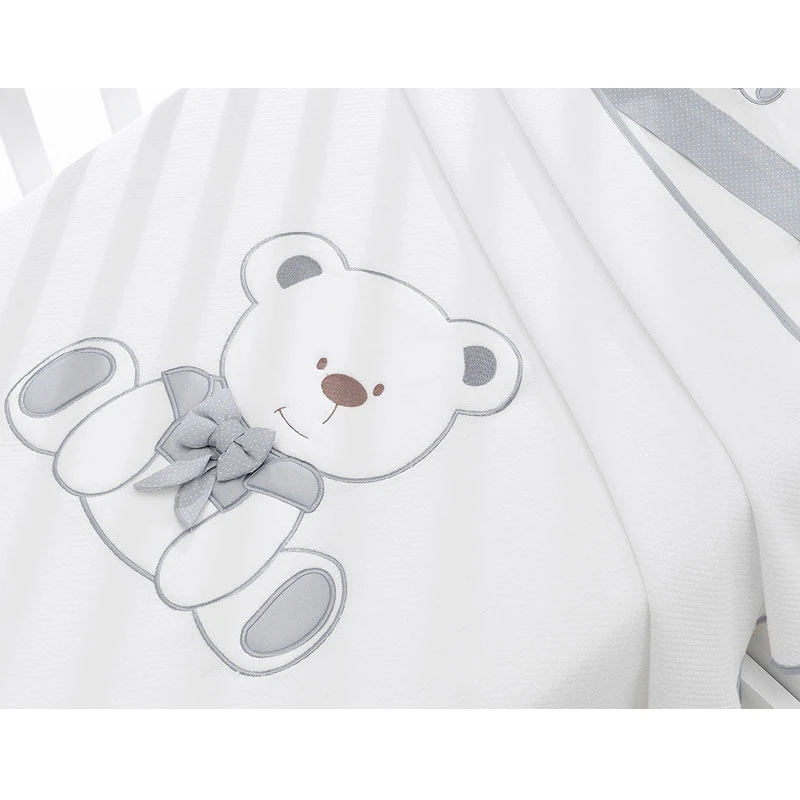 Completa il Lettino Tato con l’esclusiva Erbesi Coperta Tato in Piquet per ottenere un corredo tessile morbido, elegante e avvolgente che culla il tuo neonato prima della nanna. É realizzata in tessuti di alta qualità ed è impreziosita con un simpatico orsetto ricamato in ciniglia. Scoprila nelle sue 4 varianti Grigio, Tortora, Rosa e Azzurro e anima la prima cameretta del neonato!