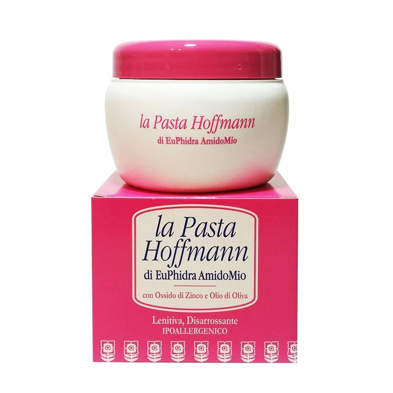 Euphidra Pasta Hoffmann Antinfiammatoria 300gr di Euphidra è ideale per proteggere la pelle sensibile del bambino e del neonato soggetta ad irritazioni causate da sudore, eccessiva salivazione, ristagno di urina e feci e sfregamenti di tipo meccanico. Grazie alla sinergia tra Ossido di Zinco (46%) e Olio di Oliva (48%), Pasta Hoffmann assicura un’azione lenitiva e disarrossante che dona sollievo immediato e previene fenomeni macerativi. Dermatologicamente testato su pelle sensibile. Testato per nichel, cromo, cobalto.