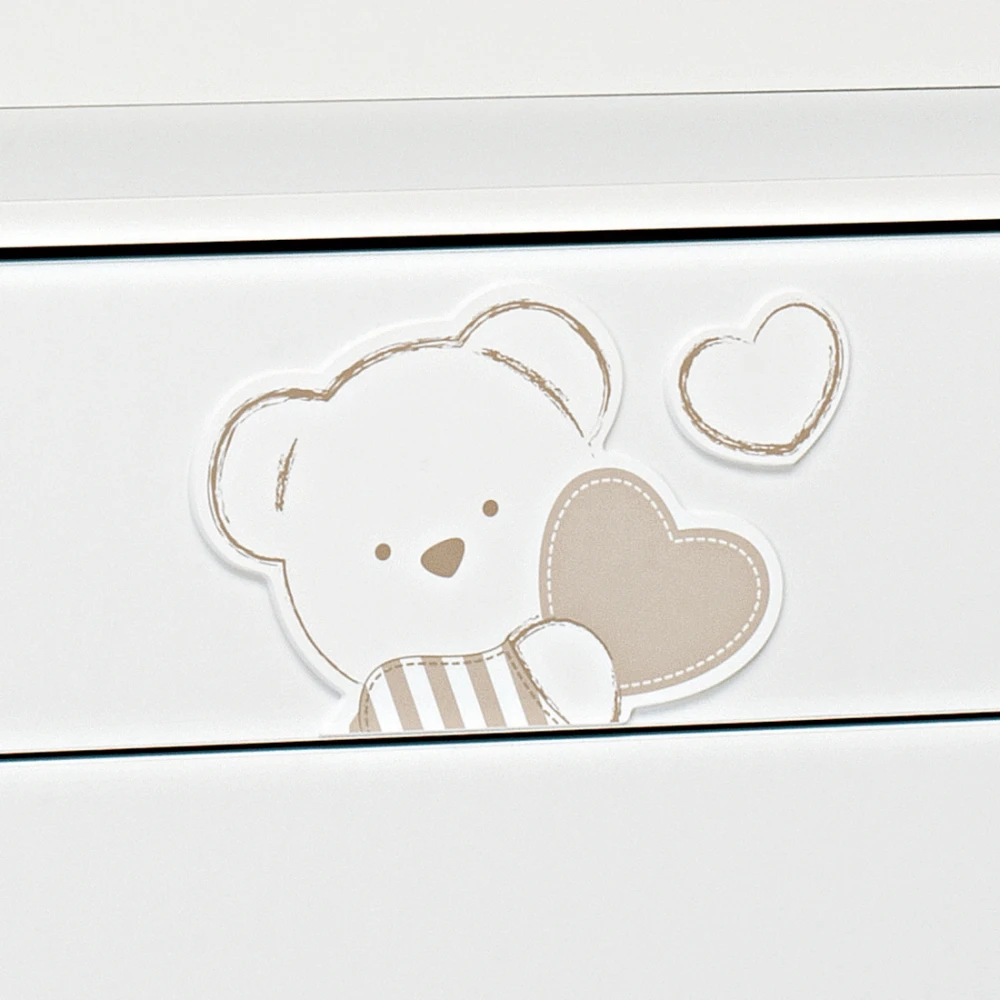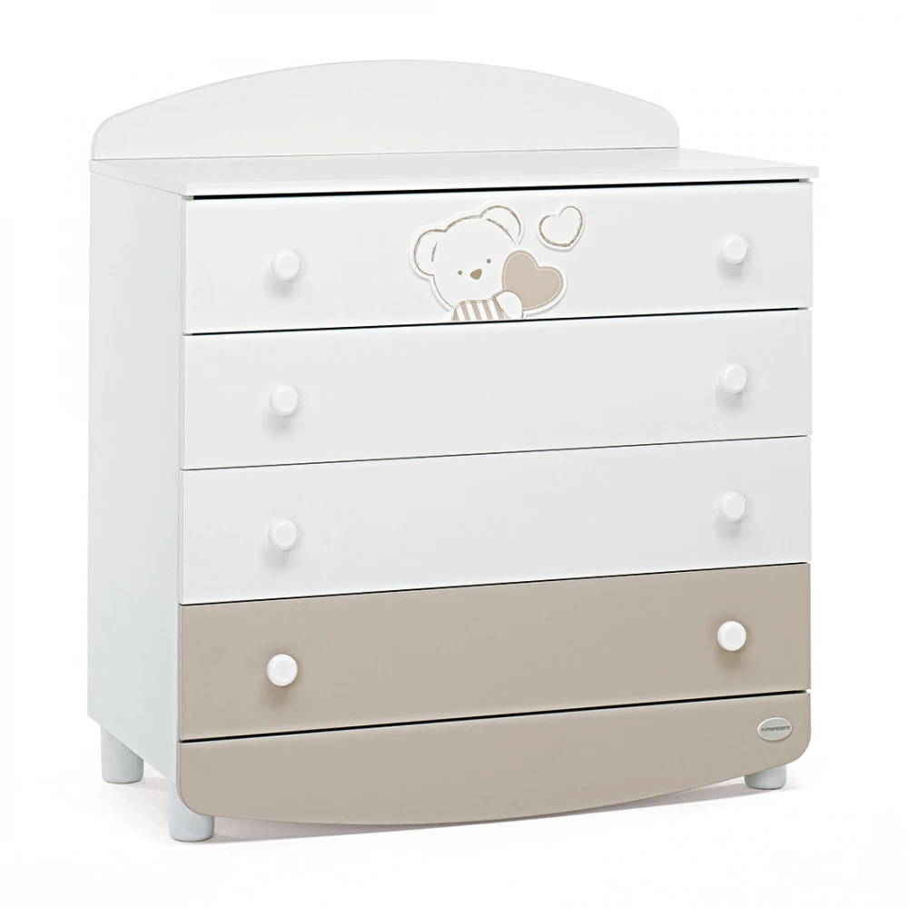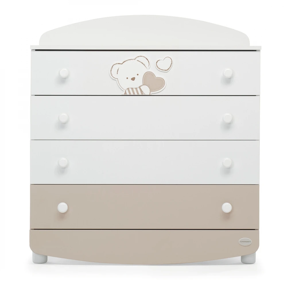 Foppapedretti Cassettiera in Legno Dolcecuore di Foppapedretti ha 4 ampi cassetti, dei quali uno decorato con il tenero motivo di cuori e orsetto che caratterizza tutta la collezione. Foppapedretti Cassettiera in Legno Dolcecuore è decorata con ricami in rilievo “soft touch” grazie al tessuto floccato piacevole al tatto. Ha anche un ampio piano superiore, dove si può collocare il materassino imbottito (venduto separatamente) per essere utilizzata come morbido fasciatoio. La struttura solida e durevole nel tempo è 100% made in Italy!
