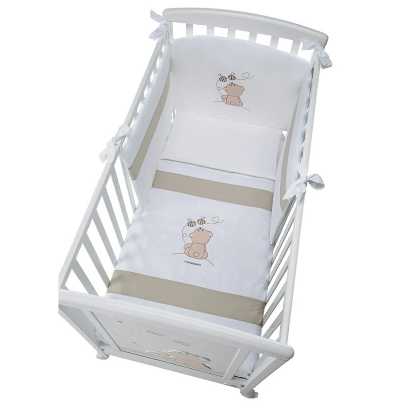 Il design del Set Piumone Golosone è unico e inimitabile, arricchito un grazioso orso goloso di miele. Perfetto da abbinare al Lettino Golosone Foppapedretti.