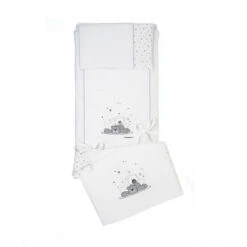 Regala un’atmosfera unica alla stanza del tuo bebé con Foppapedretti Completo Piumone, Paracolpi e Federa per Lettino Dolcestella di Foppapedretti! É il set morbido composto da paracolpi imbottito, rivestimento in cotone, sacca sfoderabile e fodera per cuscino realizzata in 100% puro cotone. Il design raffinato, unico e speciale lascerà impresso nel cuore del tuo bimbo un ricordo indelebile della sua prima cameretta in totale stile sogni, con stelline, orsetti e colori tenui.