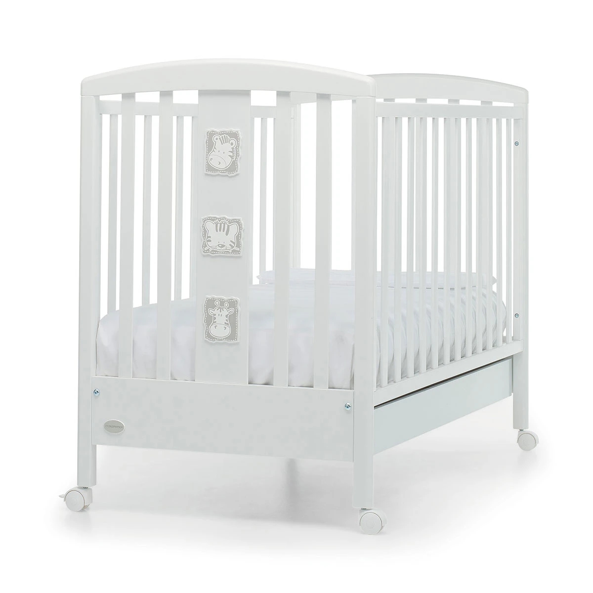 Foppapedretti Lettino Babyzoo è provvisto di una pratica sponda regolabile a due altezze che ti permette di posizionare il bambino facilmente all’interno (sponda superiore per bambini e sponda inferiore per neonati) e di riordinare il lettino senza difficoltà. La testata del lettino è decorata con simpatici animaletti della savana e ha un capiente cassetto inferiore, suddiviso in due scomparti. Le ruote sono piroettanti e facilitano ogni spostamento, inoltre sono dotate di sistema frenante. La solida struttura è realizzata in legno proveniente da aree forestali certificate FSC, ha gli spigoli arrotondati ed è dipinta con vernici atossiche e 100% made in Italy!