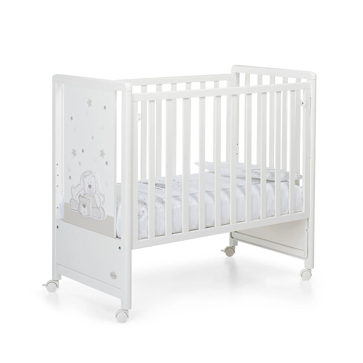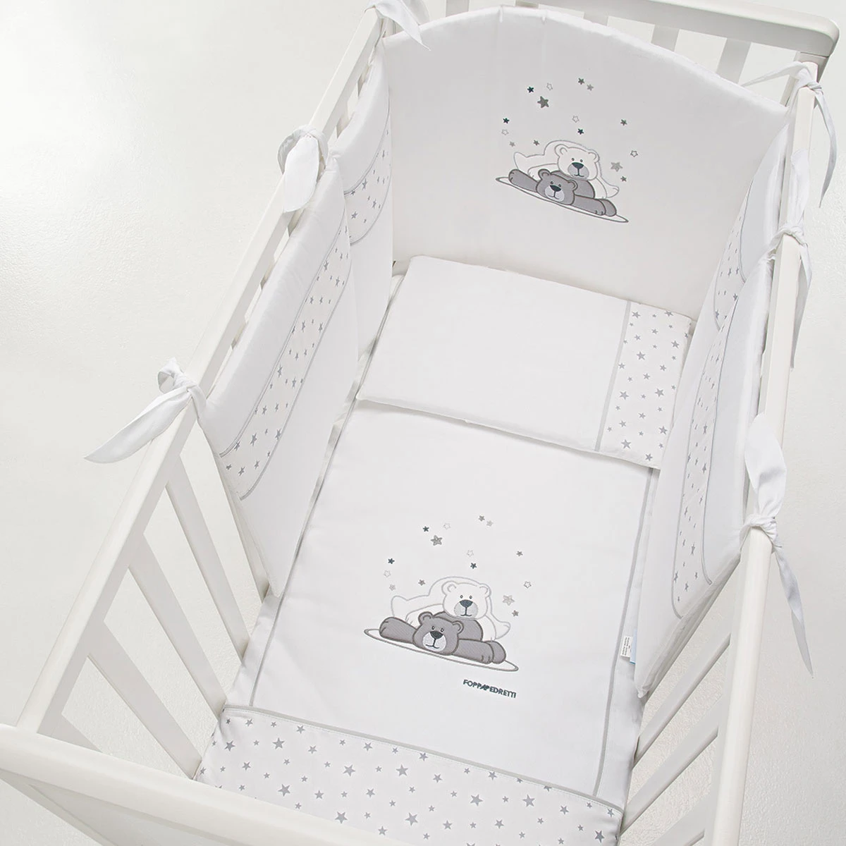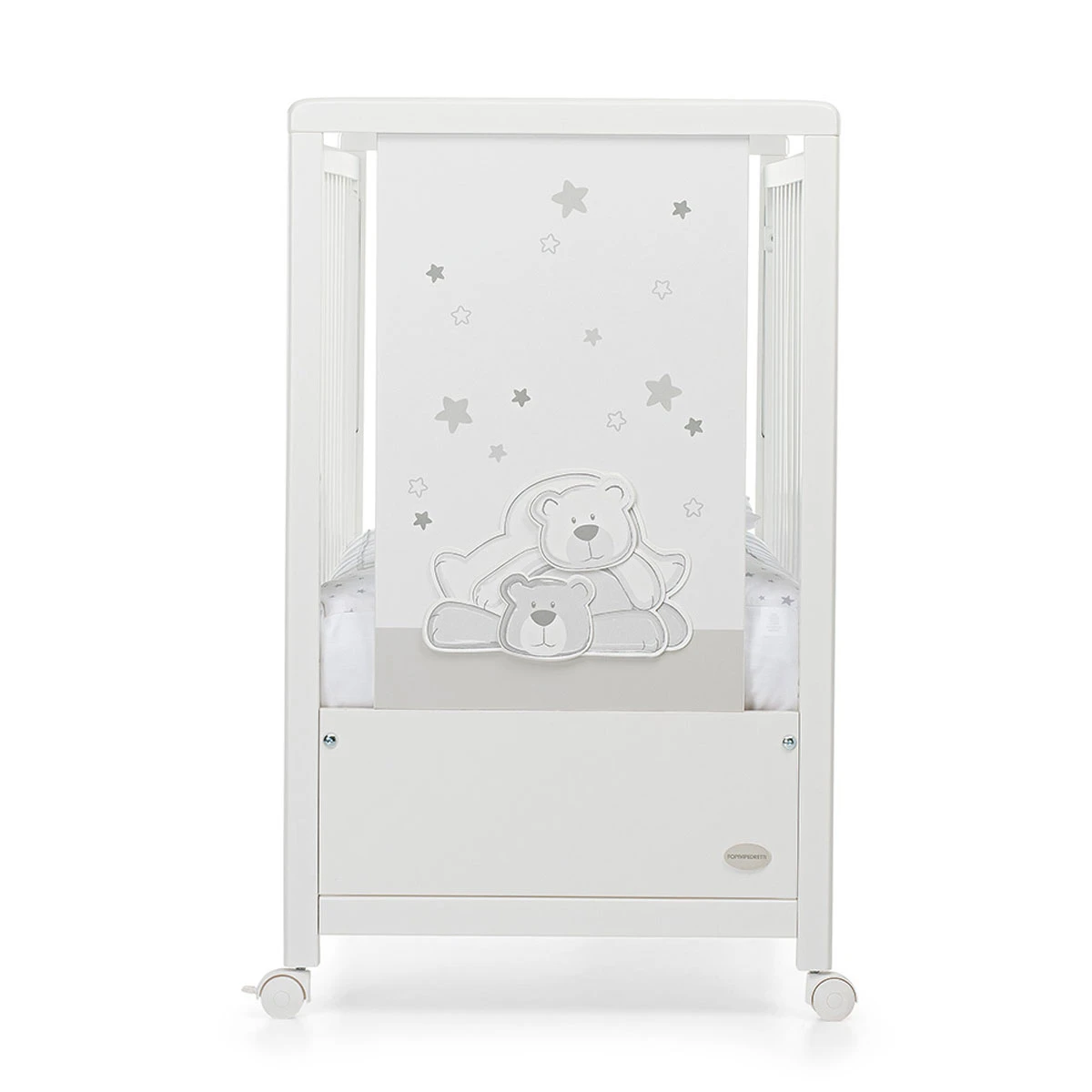 La testata del Lettino Pikkoletto è decorata con i motivi della mitica collezione Dolcestella: due teneri orsetti e tante stelle!