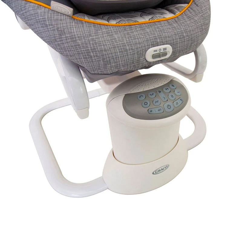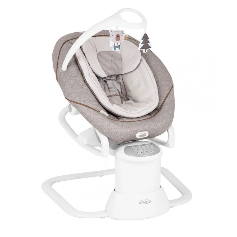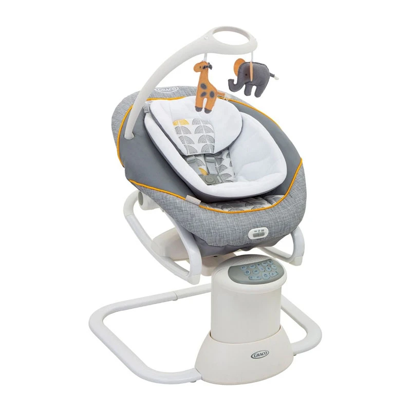 Graco Altalena Sdraietta Elettrica All Ways Soother è un’altalena, sdraietta e dondolo multifunzione che offre 16 modalità di oscillazione per il massimo relax, da destra verso sinistra e in avanti e indietro. La seduta si estende trasformandosi in un dondolo trasportabile, inoltre All Ways Soother è fornito di cintura a 5 punti che, così come la seduta, è realizzata in morbido tessuto. Il supporto removibile offre maggior sostegno alla testa del neonato. Insieme all’Altalena di Graco è inclusa una simpatica barra portagiochi con morbidi giochini appesi che danno un’aria ancora più giocosa e rilassante alla sdraietta.