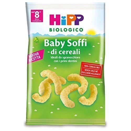 Hipp Baby Soffi di Cereali sono realizzati solo con cereali provenienti da agricoltura biologica, senza aggiunta di sale o zuccheri. Facilmente digeribili, grazie alla loro consistenza leggera si sciolgono facilmente in bocca. Dimensioni adatte alle manine dei bambini. Senza aggiunta di aromi, senza coloranti e conservanti. Non contengono organismi geneticamente modificati.