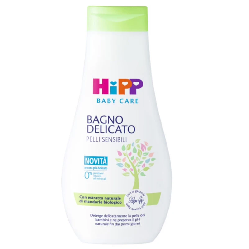 HiPP Bagno Delicato Bagnoschiuma per Bambini con Estratto Mandorle Bio, 350ml è adatto per la detersione e cura delle pelle dei bambini, indicato soprattutto per le pelli secche o tendenti a dermatite atopica. Deterge delicatamente la cute fin dal primo giorno di vita ed è privo di oli minerali, oli eterici, profumi allergizzanti, sapone, microplastiche ed è formulato solo con ingredienti 100% naturali. Capienza: 200ml.