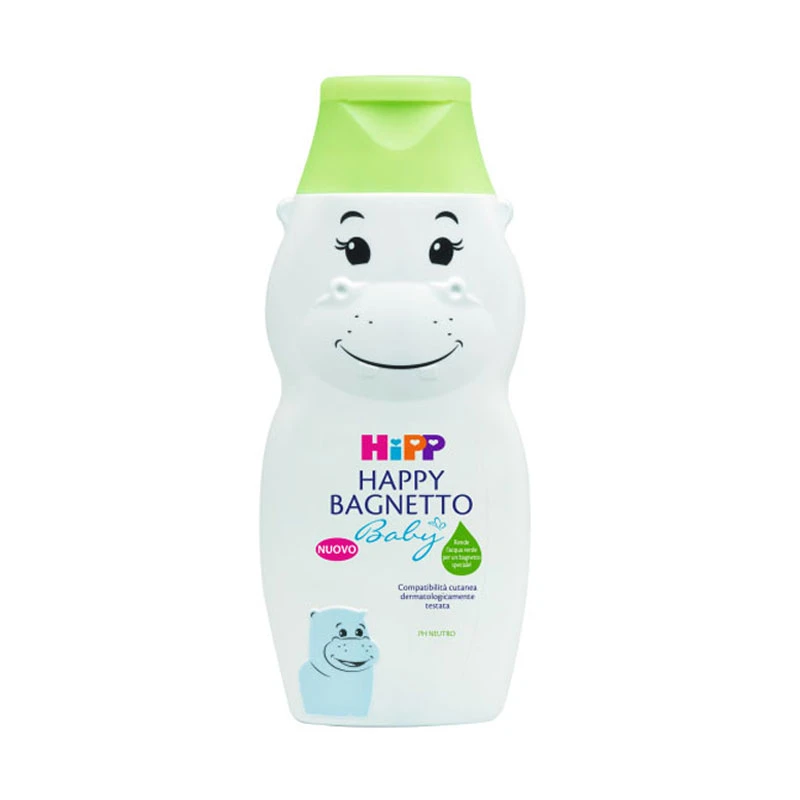 Happy Bagnetto Ippopotamo 300ml di Hipp colora l’acqua di verde e trasforma il bagnetto in un momento magico! Happy Bagnetto è il prodotto ideale per detergere la pelle con delicatezza, inoltre crea una soffice schiuma formulata per minimizzare il rischio di allergie. Privo di paraffina, profumi allergizzanti, oli eterici, sapone, parabeni, silicone. Con pH neutro per la pelle, dermatologicamente testato. 100% vegan. Formato da 300ml.