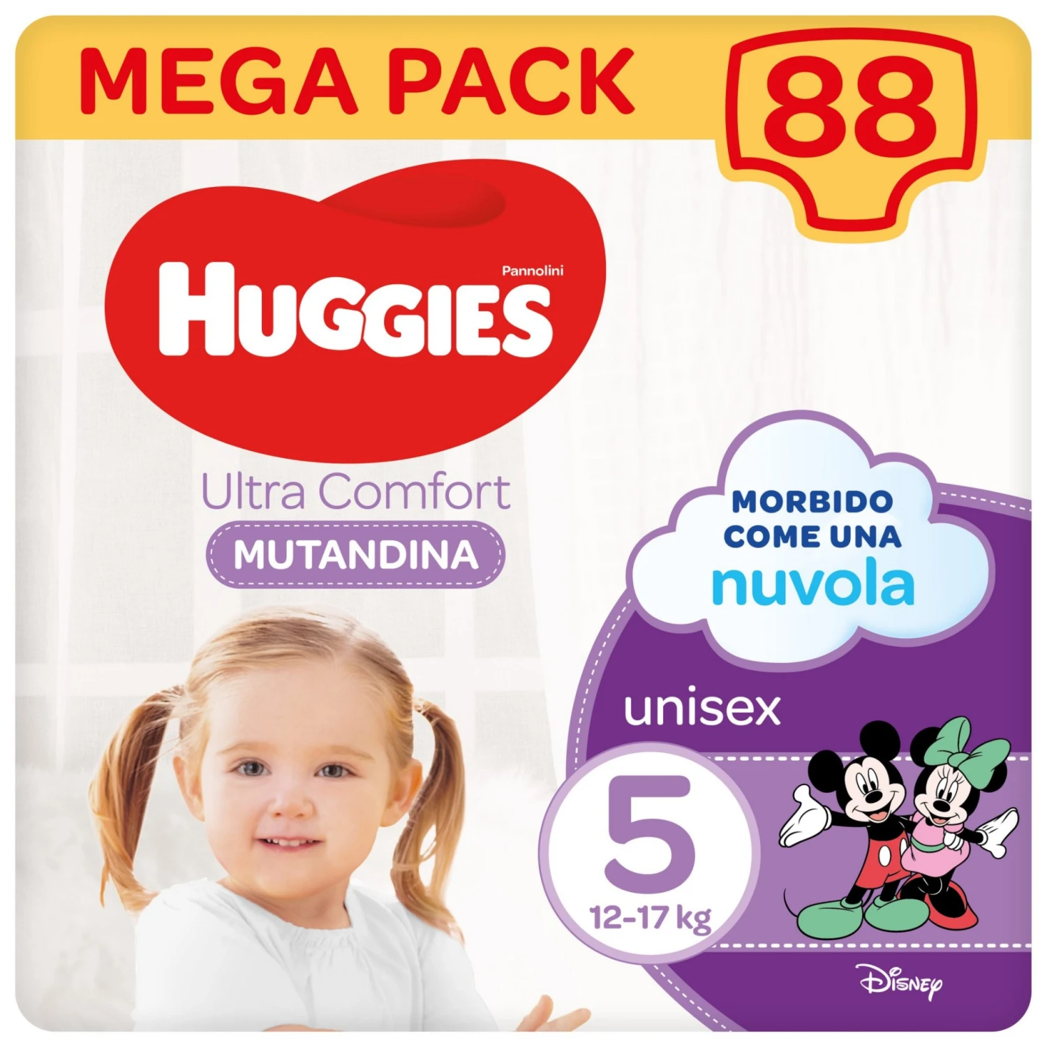 I Pannolini Mutandina Ultra Comfort 5 di Huggies sono facili da indossare, come una mutandina ed offrono la stessa assorbenza di un pannolino.
