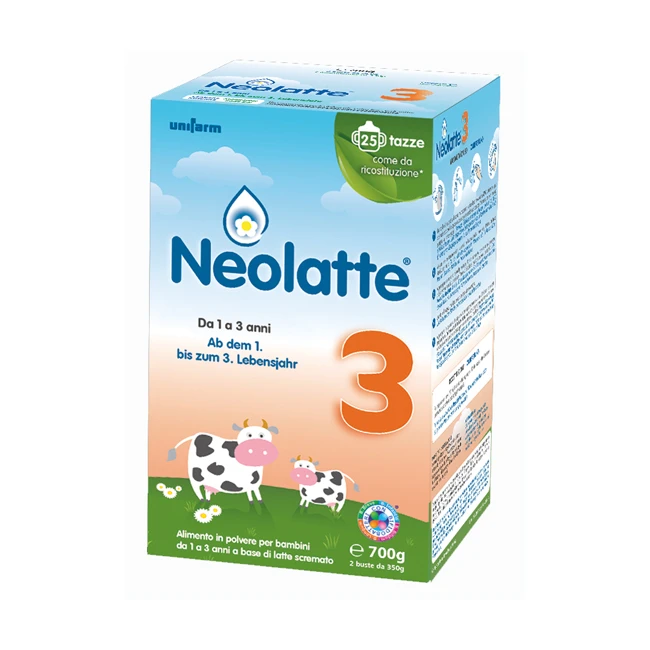 Il Latte in Polvere Neolatte 3 700g è un alimento in polvere per bambini da 1 a 3 anni a base di latte scremato, in confezione da 700 g di polvere. Il Latte in Polvere Neolatte 3, come l’intera linea Neolatte, viene formulato utilizzando solo latte biologico.