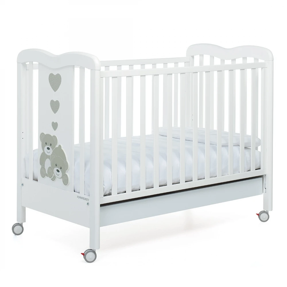 Il lettino in legno Tenerorso di Foppapedretti ha una sponda regolabile a due altezze, per facilitare il riordino del lettino.