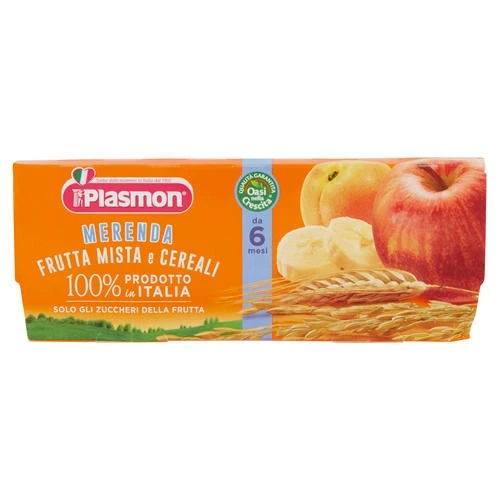 Merenda Frutta Mista e Cereali 2 x 120g. Merenda che abbina le proprietà della frutta al gusto dei cereali.