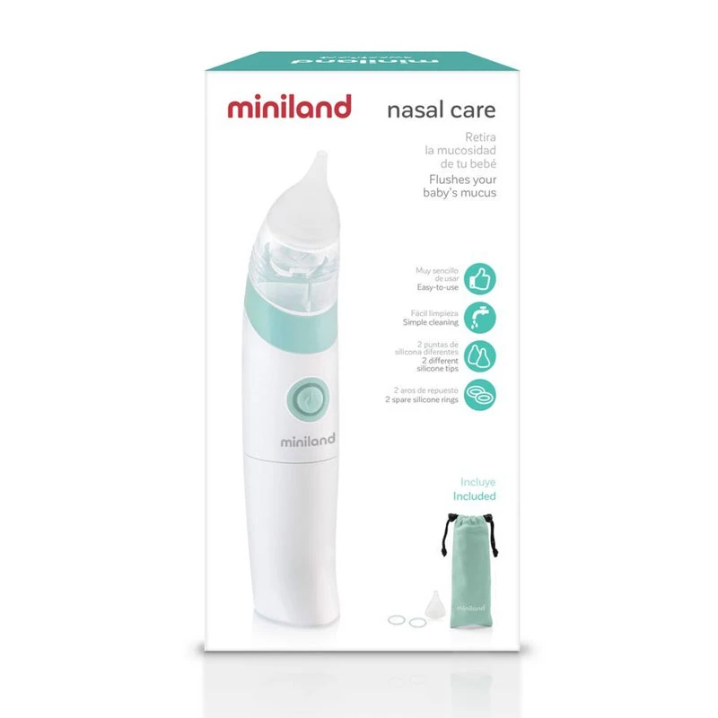 Miniland Aspiratore Nasale Nasal Care con Beccuccio in Silicone di Miniland aiuta a pulire adeguatamente il nasino intasato, liberandolo da muco, catarro e permettendo al bambino di respirare bene. É un aspiratore elettrico molto facile e veloce da utilizzare e altrettanto da pulire e igienizzare. Insieme a Nasal Care sono incluse: