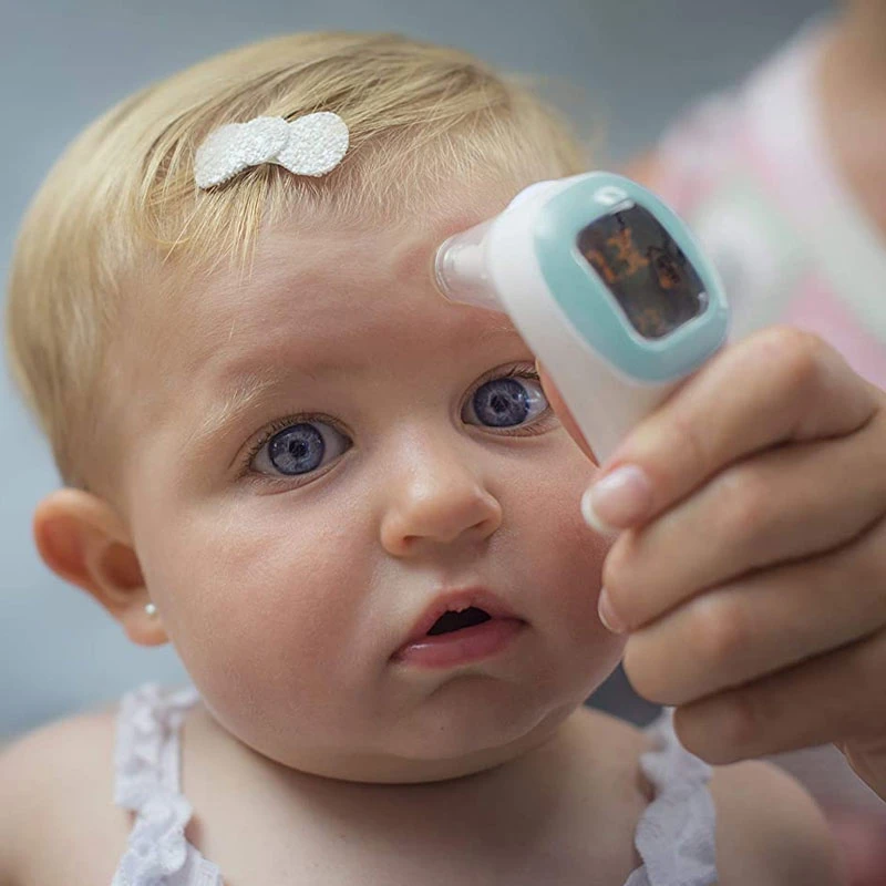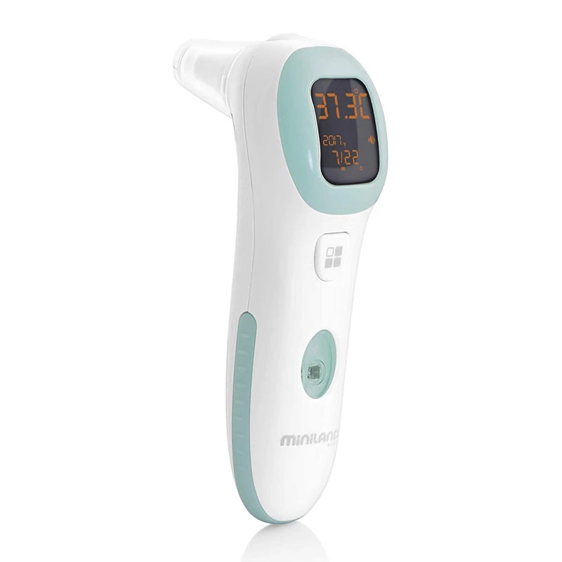 Miniland Termometro Digitale Thermotalk Plus di Miniland è il dispositivo che misura rapidamente la temperatura corporea. Basta avvicinarlo all’orecchio o alla fronte del bambino e in pochi secondi Thermotalk comunica a voce la temperatura, inoltre ha la capacità di monitorare anche la temperatura dell’ambiente e il battito cardiaco. Ha un display LCD retroilluminato su cui è possibile salvare le 15 misurazione precedenti e la data in cui sono state effettuate, così da riuscire a tenere sotto controllo l’andamento della temperatura corporea del tuo bambino. Termotalk Plus si spegne automaticamente dopo qualche minuto di inutilizzo.
