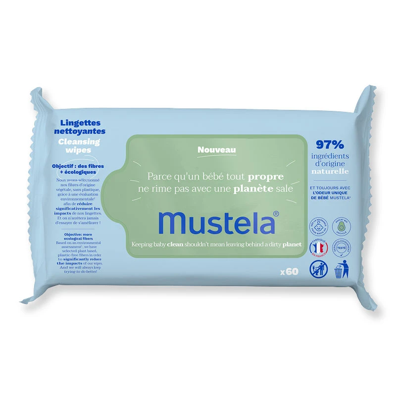 Mustela 60 Salviettine Detergenti Multiuso Con Avocado Bio, Per Bambino, Biodegradabili