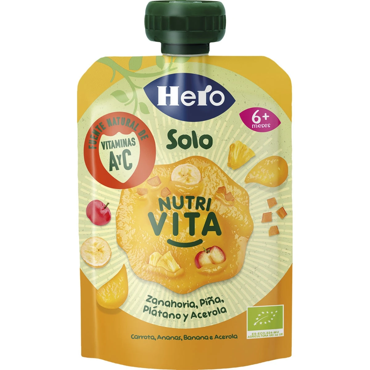 Nutri Vita al gusto carota, ananas, banana e acerola 100gr. è ideale per neonati dai 6 mesi in su.