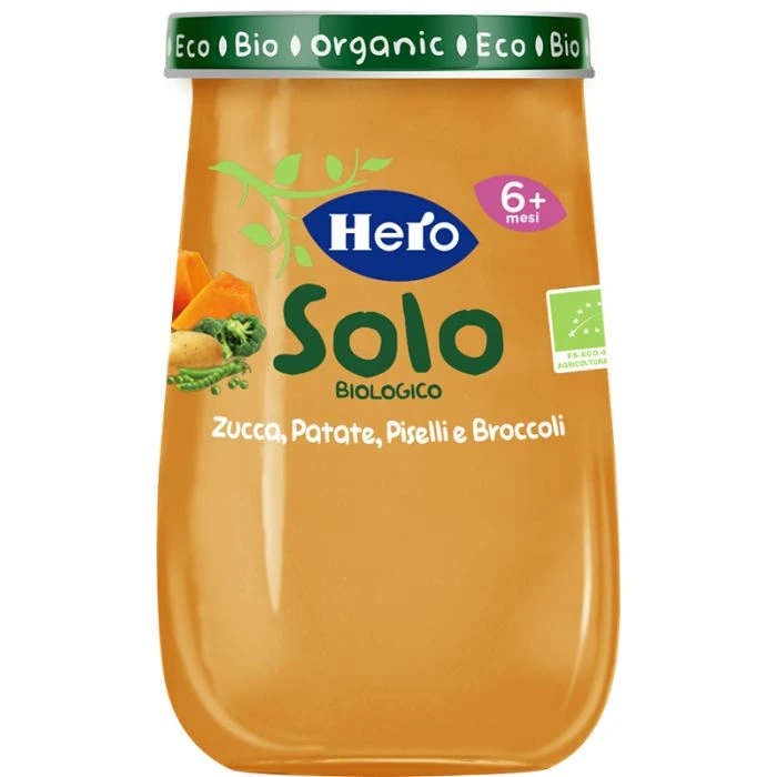 L’omogeneizzato da 190gr. al gusto zucca, patate, piselli e broccoli è prodotto esclusivamente con prodotti biologici, ideale per neonati dai 6 mesi in su.