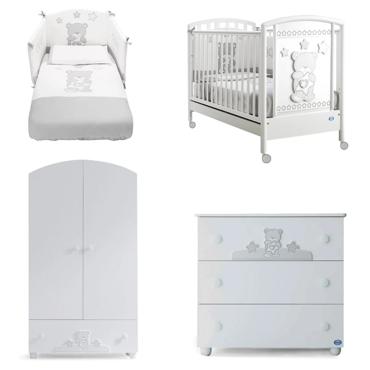 Pali Lettino Birba Smart con Armadio, Comò in Legno e Set Letto Piumone Sfilabile, Paracolpi e Federa permette di creare una cameretta funzionale e stimolante in totale stile Birba!