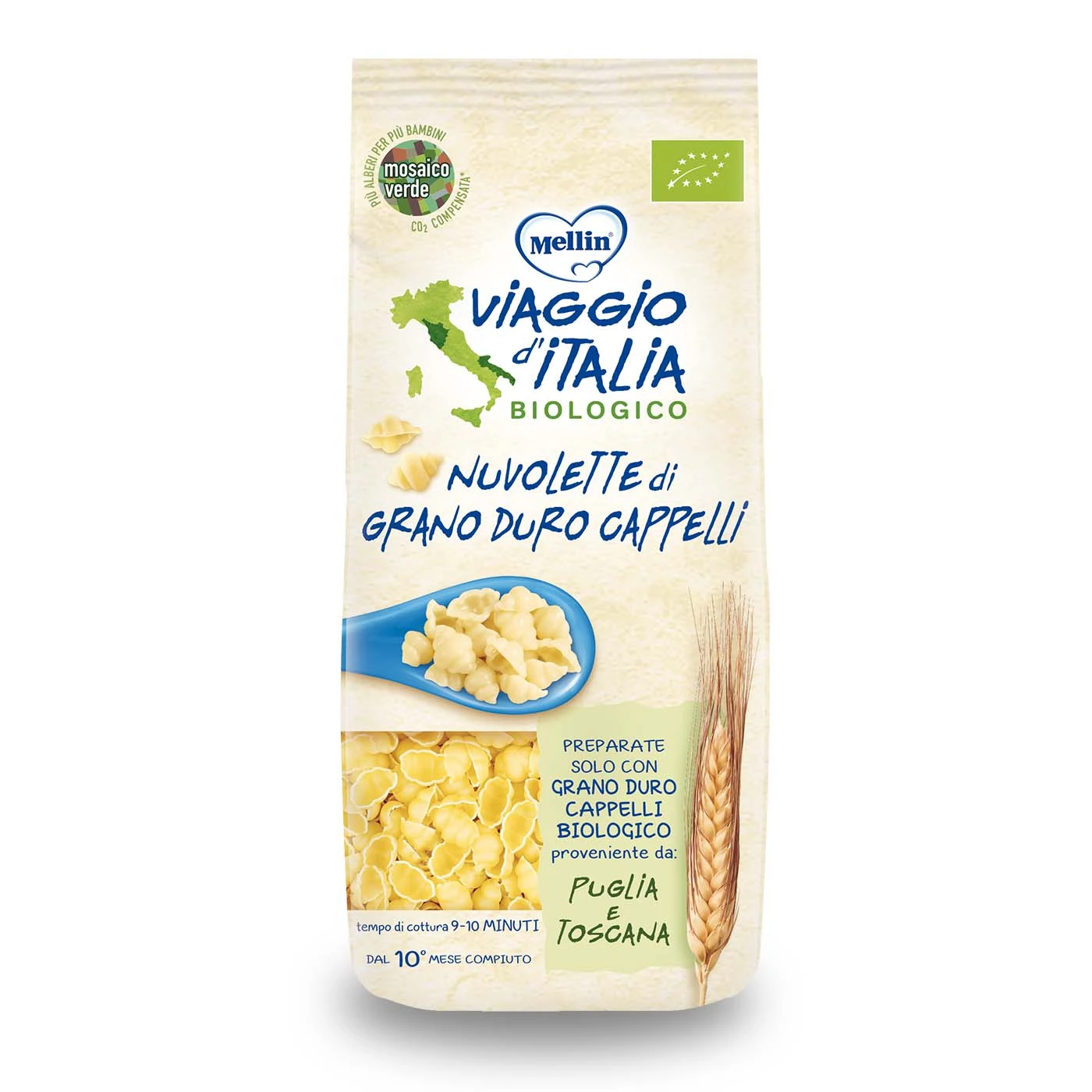 Pastina di Grano Duro Cappelli Nuvolette Bio 250g di Mellin. Finalmente a misura di bambino il cereale antico, ideale per muovere i primi passi nello svezzamento.