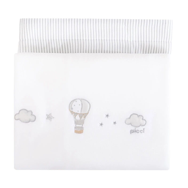 Picci Coperta Sonnocaldo Calda e Morbida con Ricami per Letto Aria 115x150cm di Picci è la coperta in pile decorata con graziosi ricami di una mongolfiera tra stelle e nuvole. Ideale per il Letto Aria ma può essere utilizzata anche in qualsiasi altro letto. Picci Coperta Sonnocaldo è realizzata in 100% poliestere. Lavabile in lavatrice a 40°.