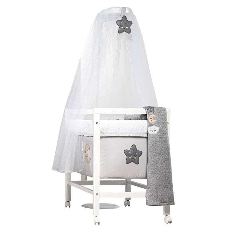 Picci Set 3pz Coprimaterasso, Lenzuolo Sopra e Federa per Culla Smile – Grigio di Picci richiamano l’atmosfera calma e serena delle notti stellate creando l’ambiente ideale per la nanna del bambino. Consiste in un morbido ed elegante set ricamato che include: coprimaterasso 48x84cm, Lenzuolo Sopra 90x120cm e Federa 35x40cm. Picci Set 3pz Coprimaterasso, Lenzuolo Sopra e Federa è compatibile con la culla Nido, culla Converse e tutte le culle o carozzine di uguali dimensioni.