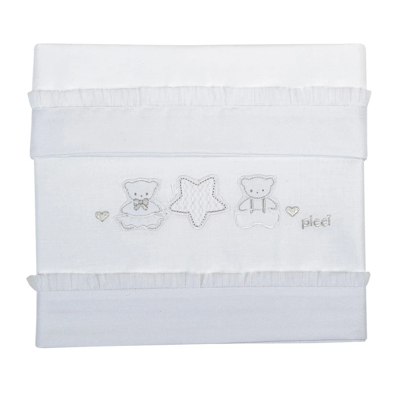 Picci Set 3pz Lenzuolino, Coprimaterasso e Federa per Culla Nanny di Picci è realizzato in 100% cotone, perfetto come set tessile per il lettino Nanny del tuo bambino e per tutti i letti di dimensioni simili. Il Set include 1 Lenzuolo sopra 90 x 120cm, 1 Coprimaterasso 48 x 84cm, 1 Federa Cuscino 35 x 40cm. Colori disponibili: Bianco, Crema.