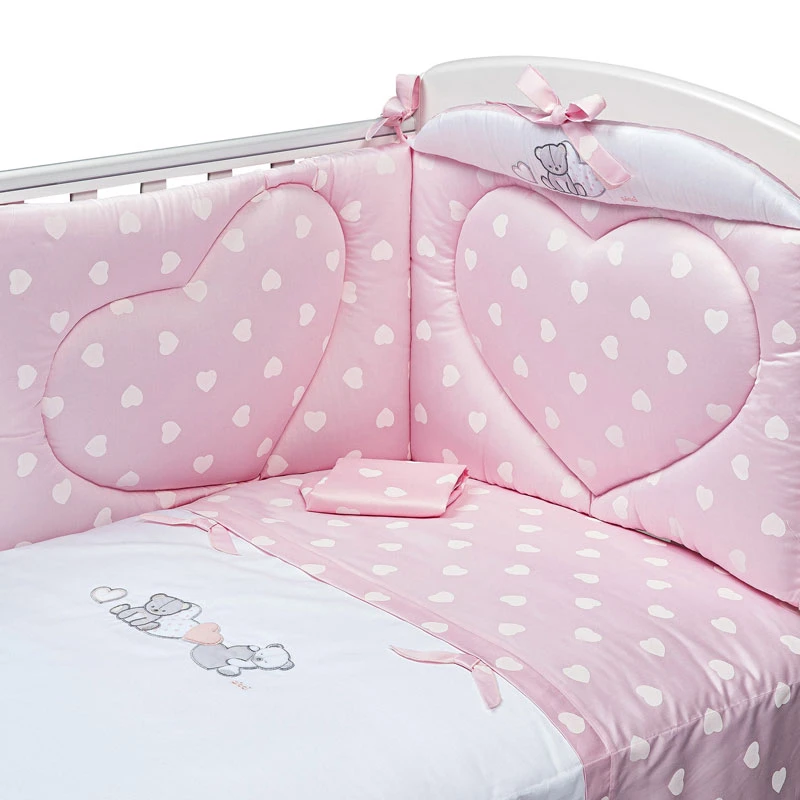 Picci Set 3pz Piumetto Imbottito, Paracolpi e Federa con Cuori per Letto Amelie di Picci è un comodo e caldo set completo invernale per lettino. Comprende Piumetto Imbottito 80x130cm, Paracolpi 52/41x192cm e Federa 40x60cm. Realizzato in 100% cotone e con imbottitura interna 100% poliestere. Set 3pz Piumetto Imbottito, Paracolpi e Federa è ricamato con grandi cuori belli ed eleganti. Compatibile con il letto Amelie e con i letti di dimensioni uguali.