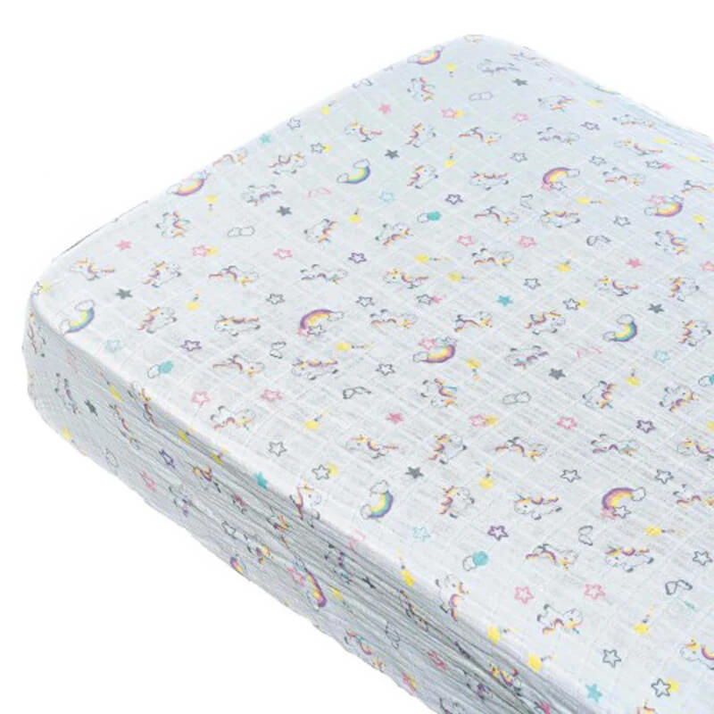 Morbidezza e comfort del tessuto sono le caratteristiche principali del Set Coprimaterasso per Lettino Unicorni (2 Pezzi), con l’aggiunta di motivi decorativi che catturano l’occhio e conquistano il cuore. Unicorni, Arcobaleni, Stelle, Nuvole e Farfalle sono pronti per completare il corredino del Neonato in arrivo.