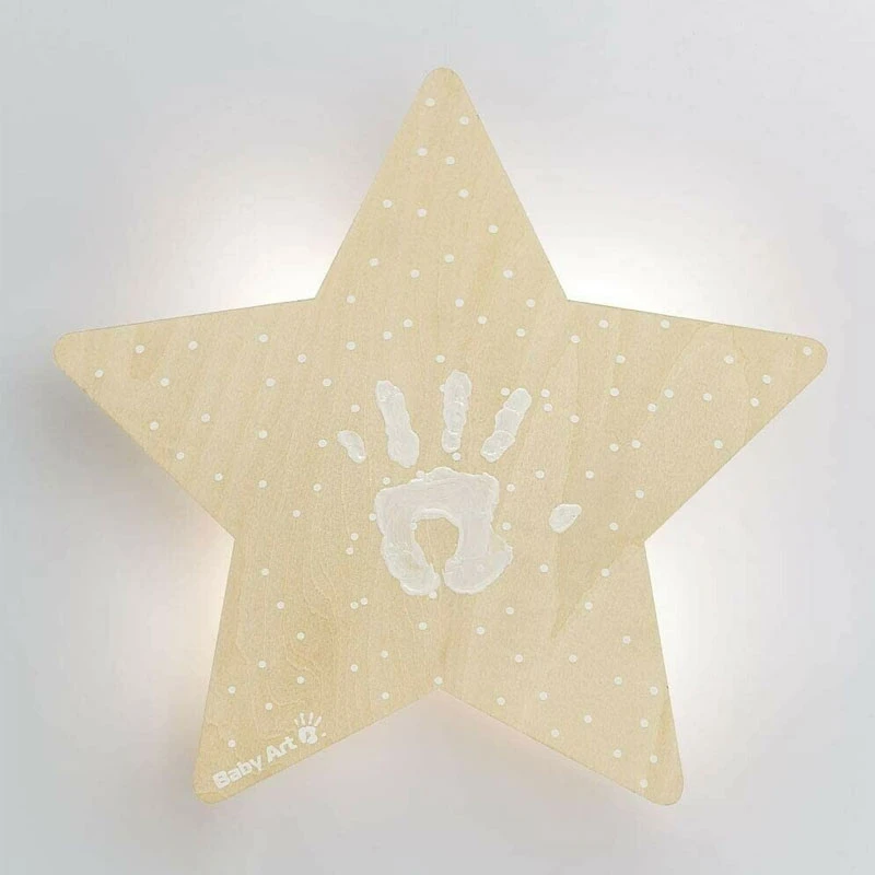 Wall Light – Lampada Stella con Impronta di Baby Art è un’elegante lampada led a forma di stella perfetta per regalare un’atmosfera calda e accogliente alla cameretta del tuo bambino. É decorata con una mano e dei pois bianchi, la retroilluminazione a led può essere regolata su due diverse intensità. Wall Light – Lampada Stella con Impronta di Baby Art si appende al muro ed è dotata anche di luce notturna. Funziona a batteria.