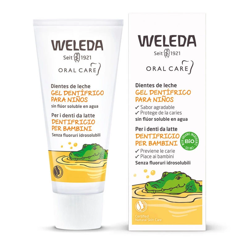 Gel Dentifricio per Bambini di Weleda formulato con ingredienti sicuri che puliscono in profondità eliminando lo sporco depositato. Igienizza e preserva l’equilibrio della bocca, pulisce delicatamente ed è perfetto per accompagnare il tuo bimbo durante la crescita dei primi denti da latte.